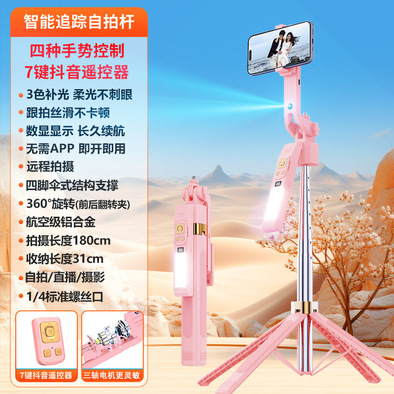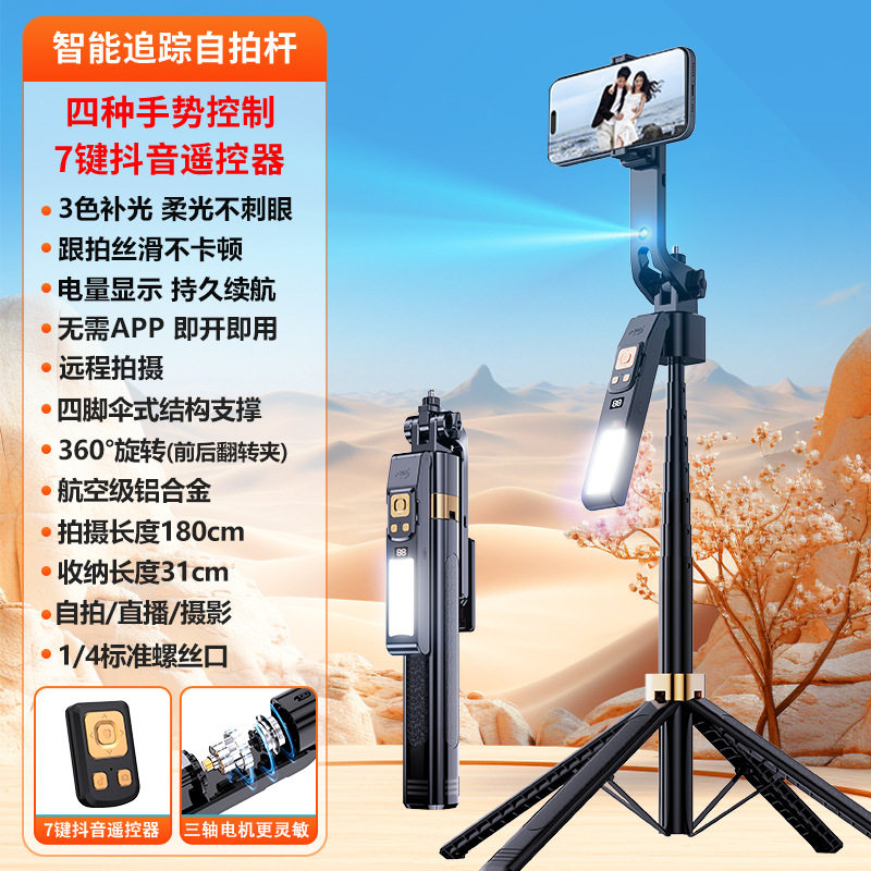 (FREE SEA SHIPPING) AI intelligent follow-up pan-tilt integrated face follow live broadcast bracket mobile phone universal selfie stick 1.8m four-legged bracket