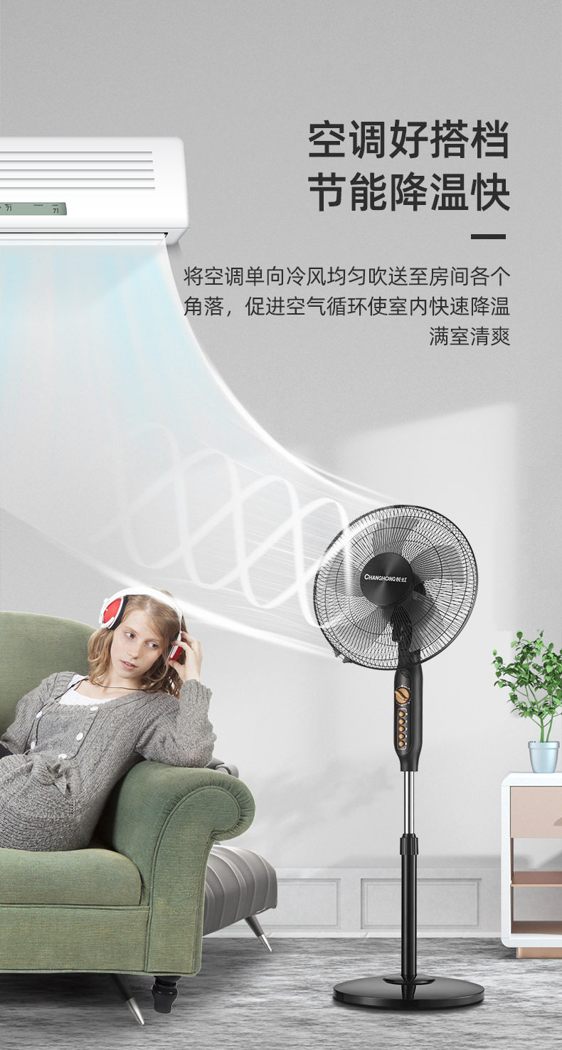 Changhong electric fan household 16-inch floor fan vertical fan dormitory office machinery vigorous fan fan