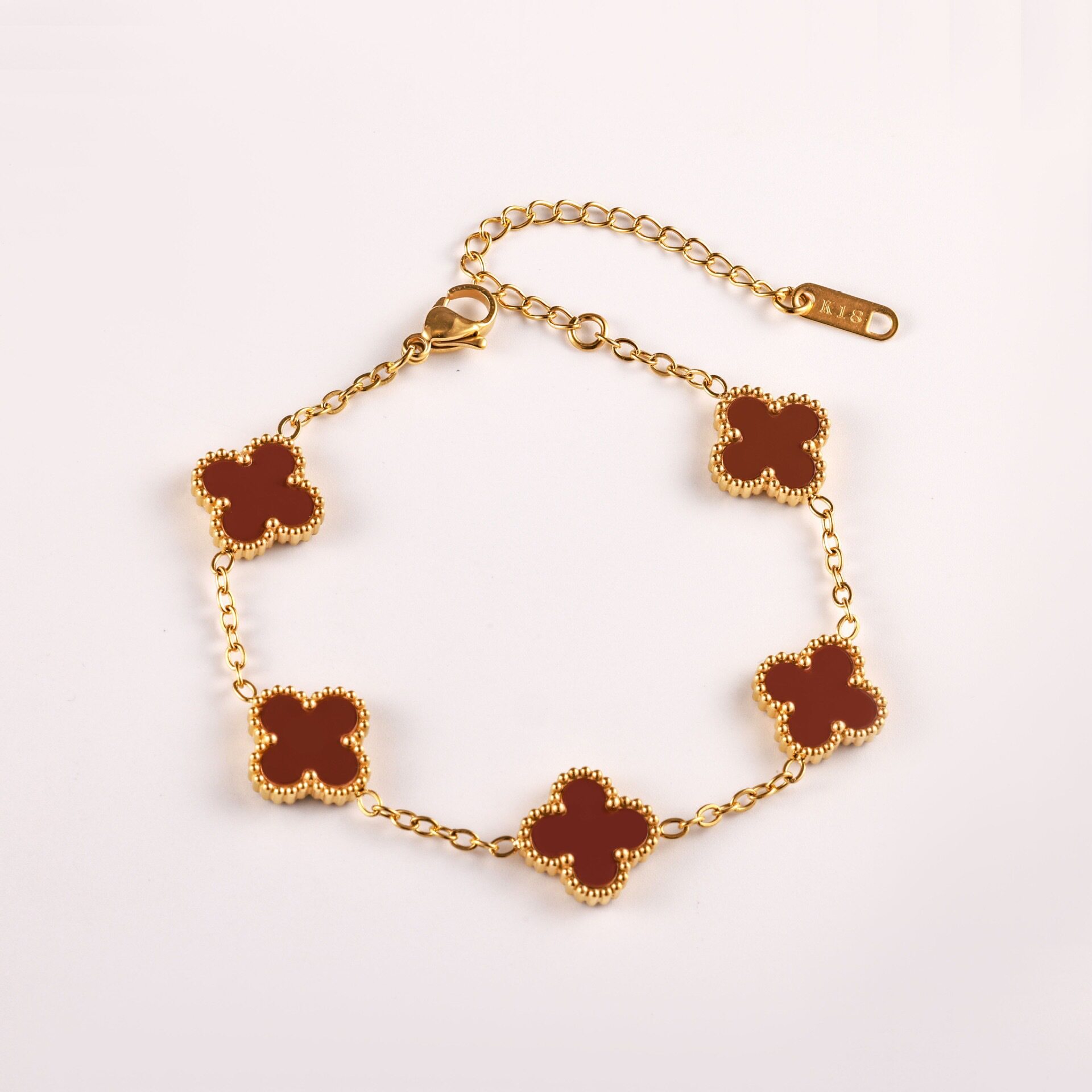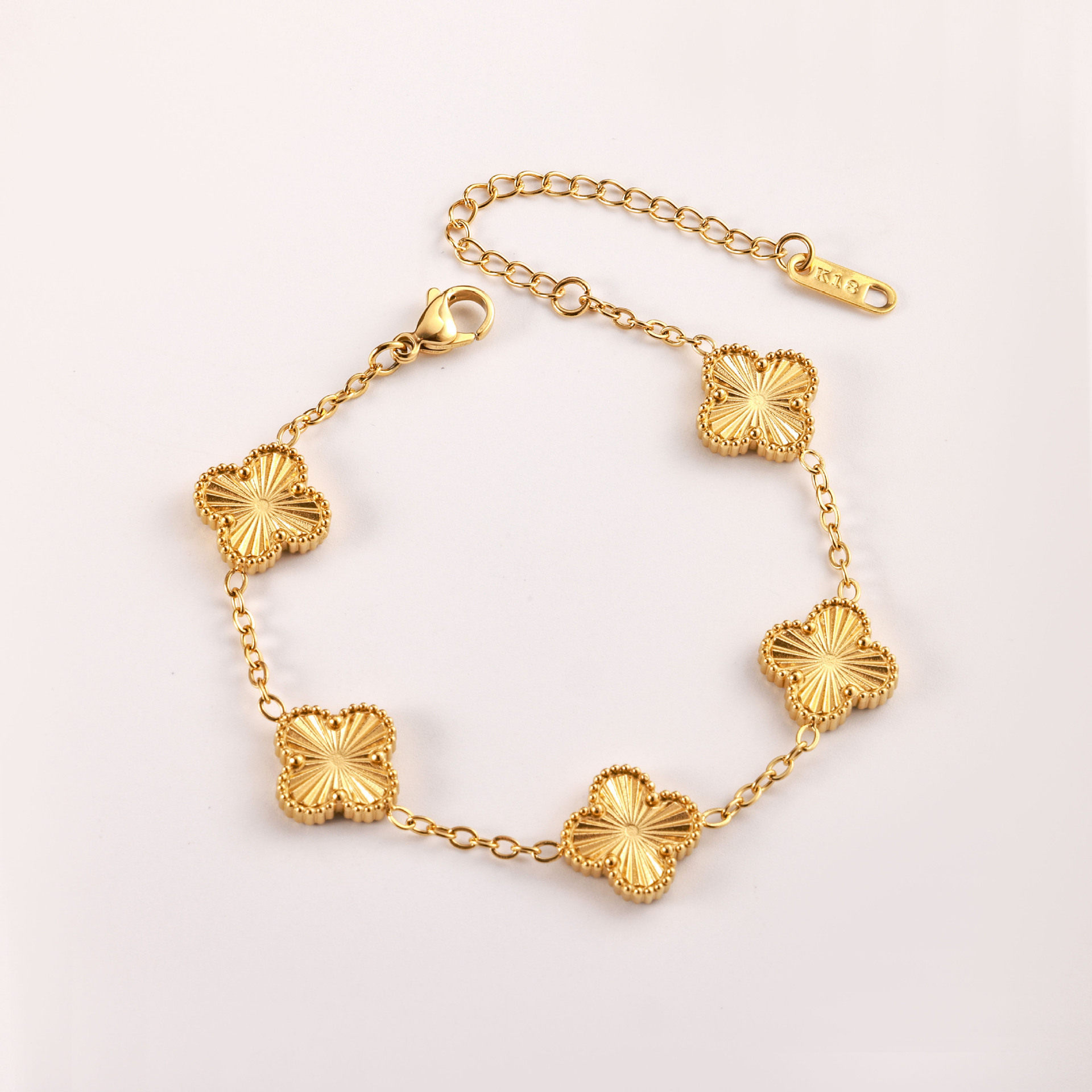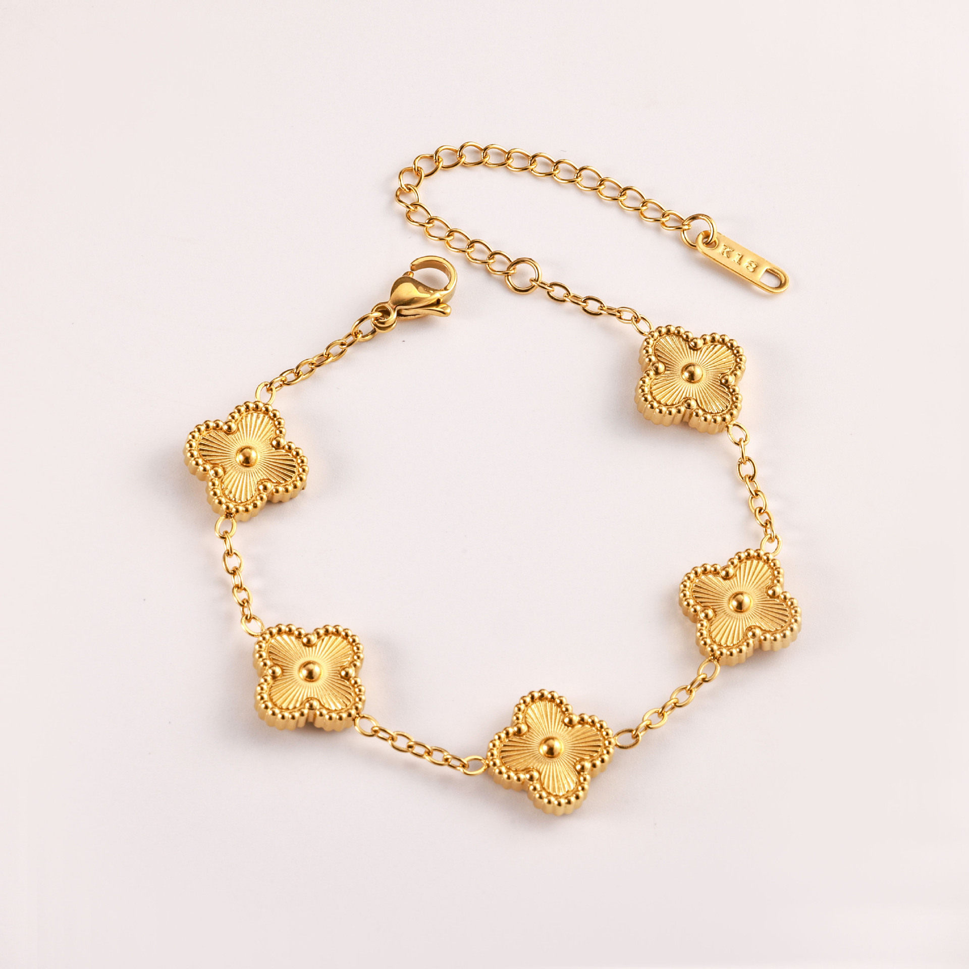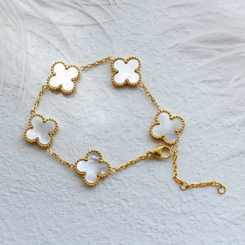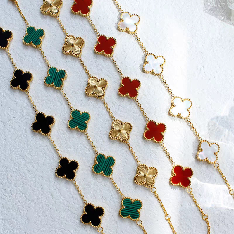 Four-leaf clover bracelet for women, light luxury and high-end 18K gold plated double-sided mother-of-pearl clover hand jewelry