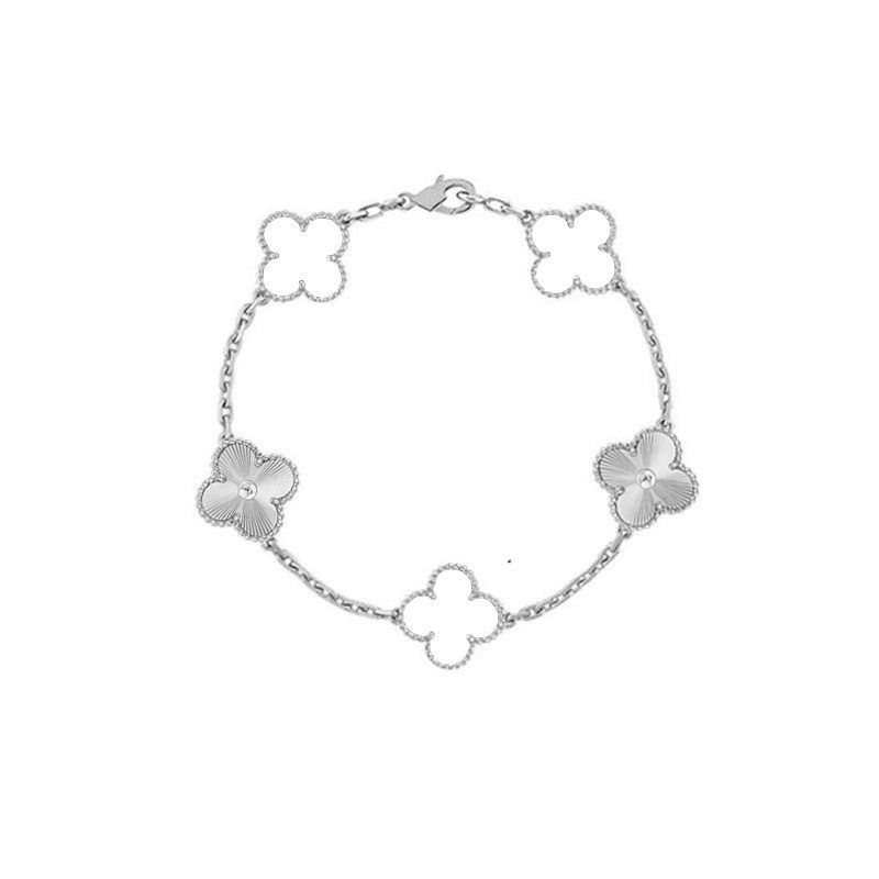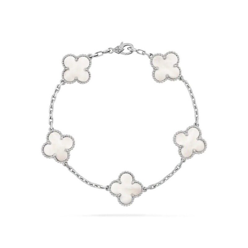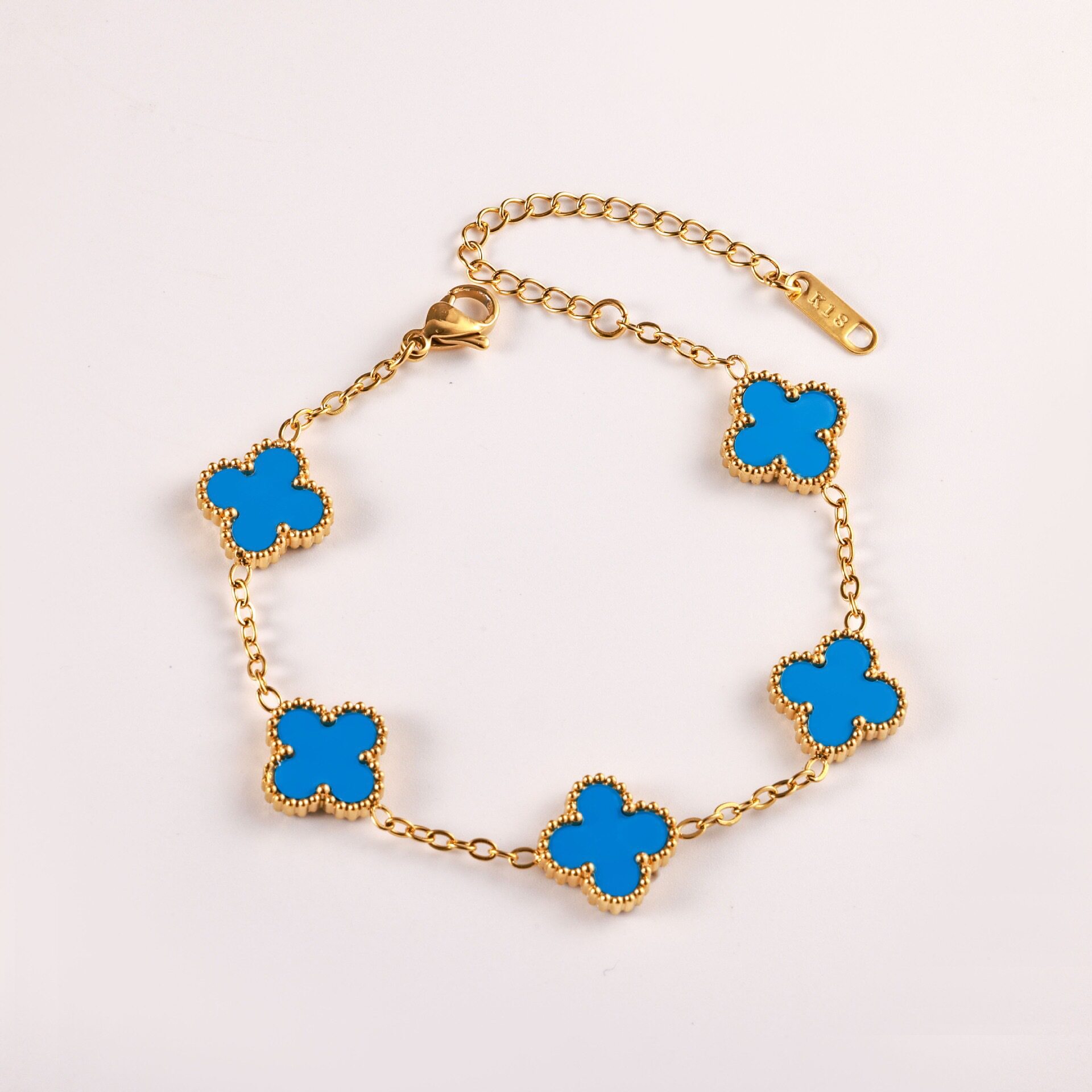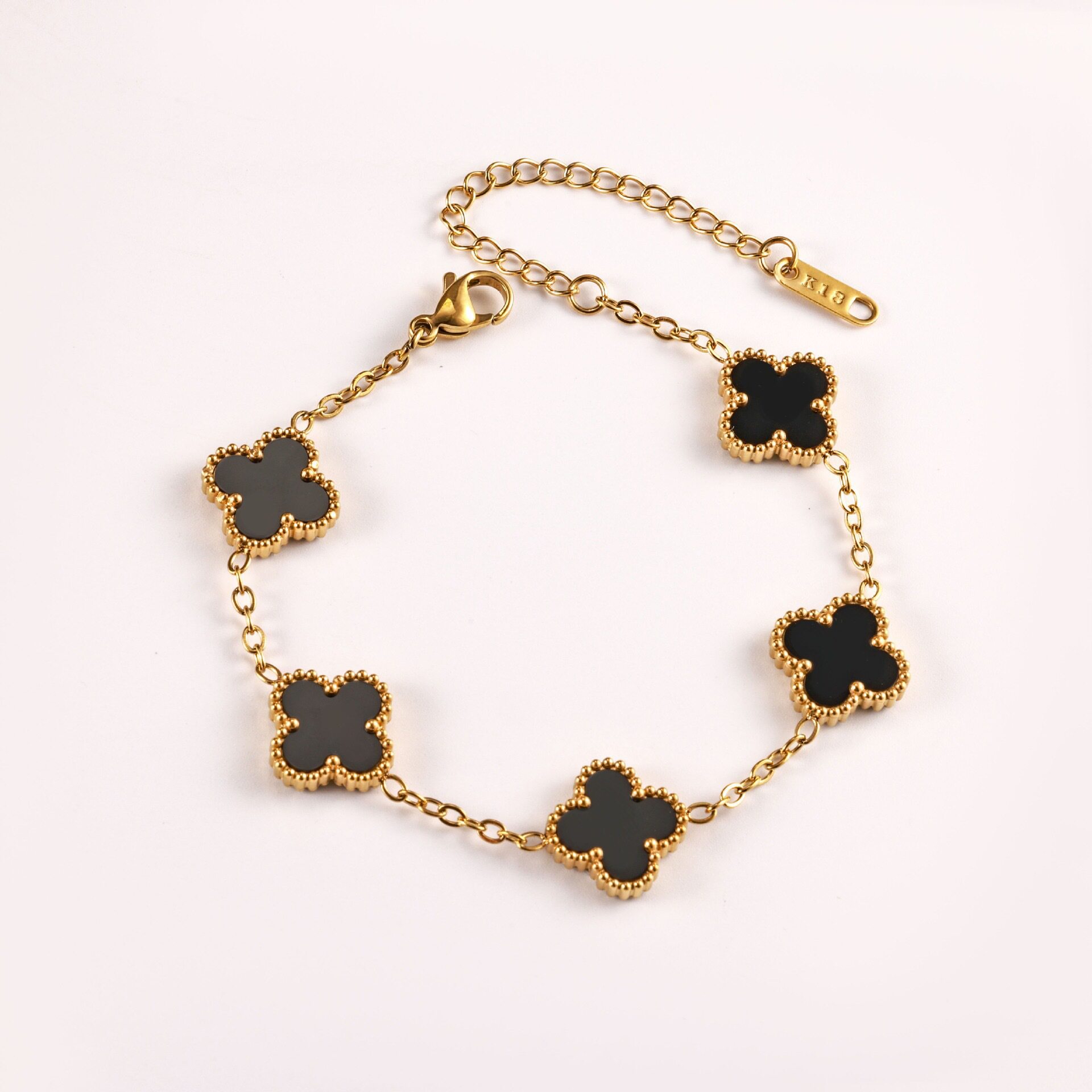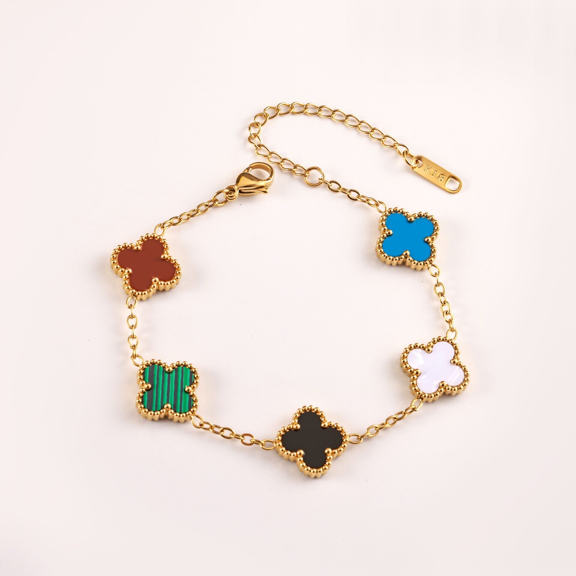 Four-leaf clover bracelet for women, light luxury and high-end 18K gold plated double-sided mother-of-pearl clover hand jewelry