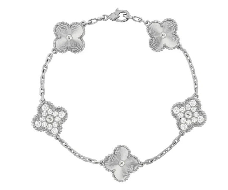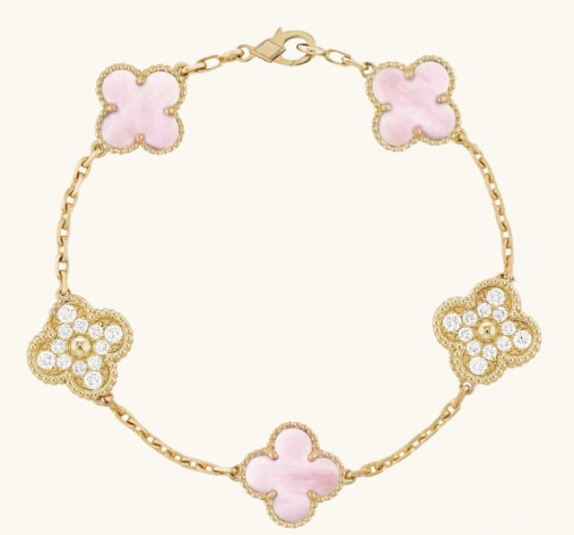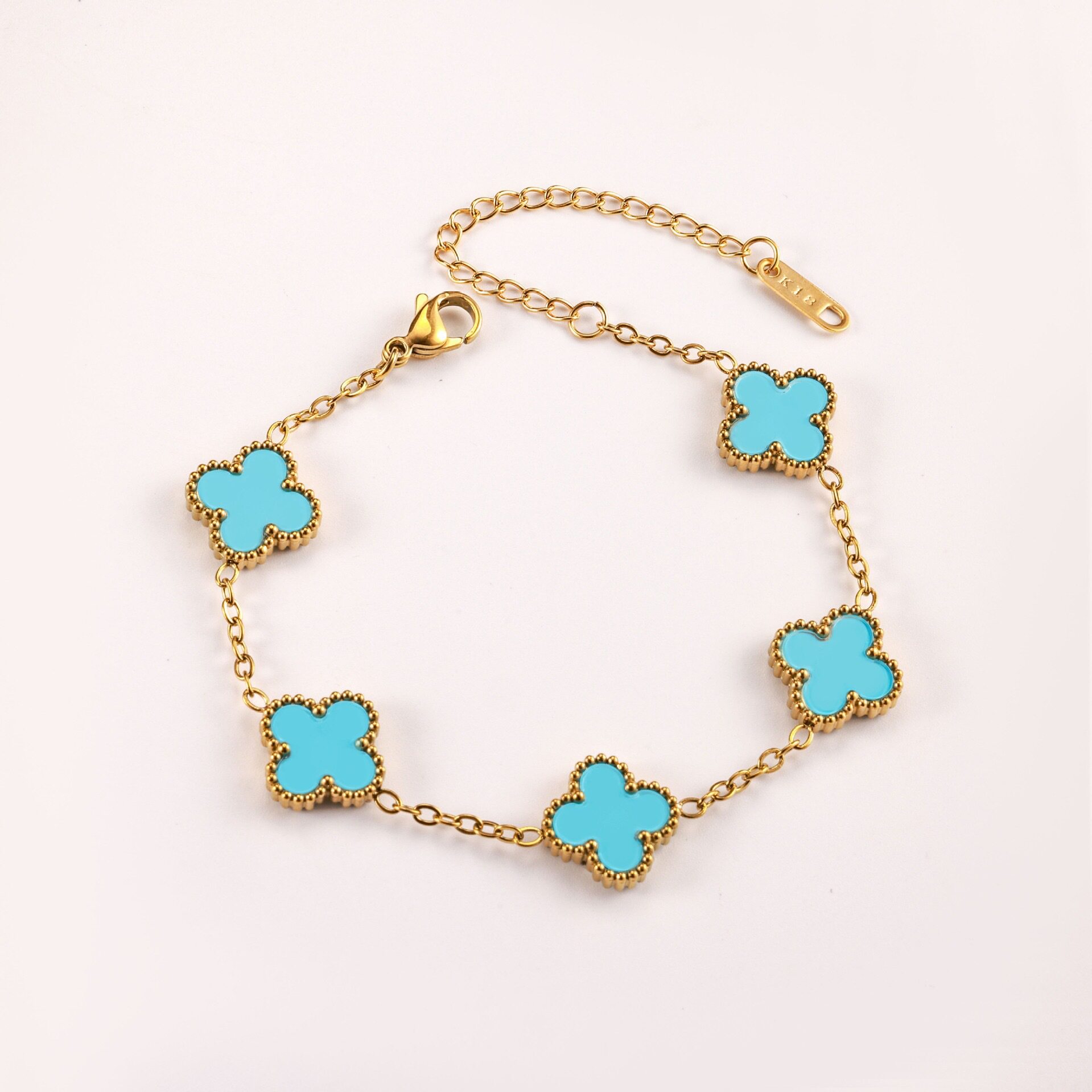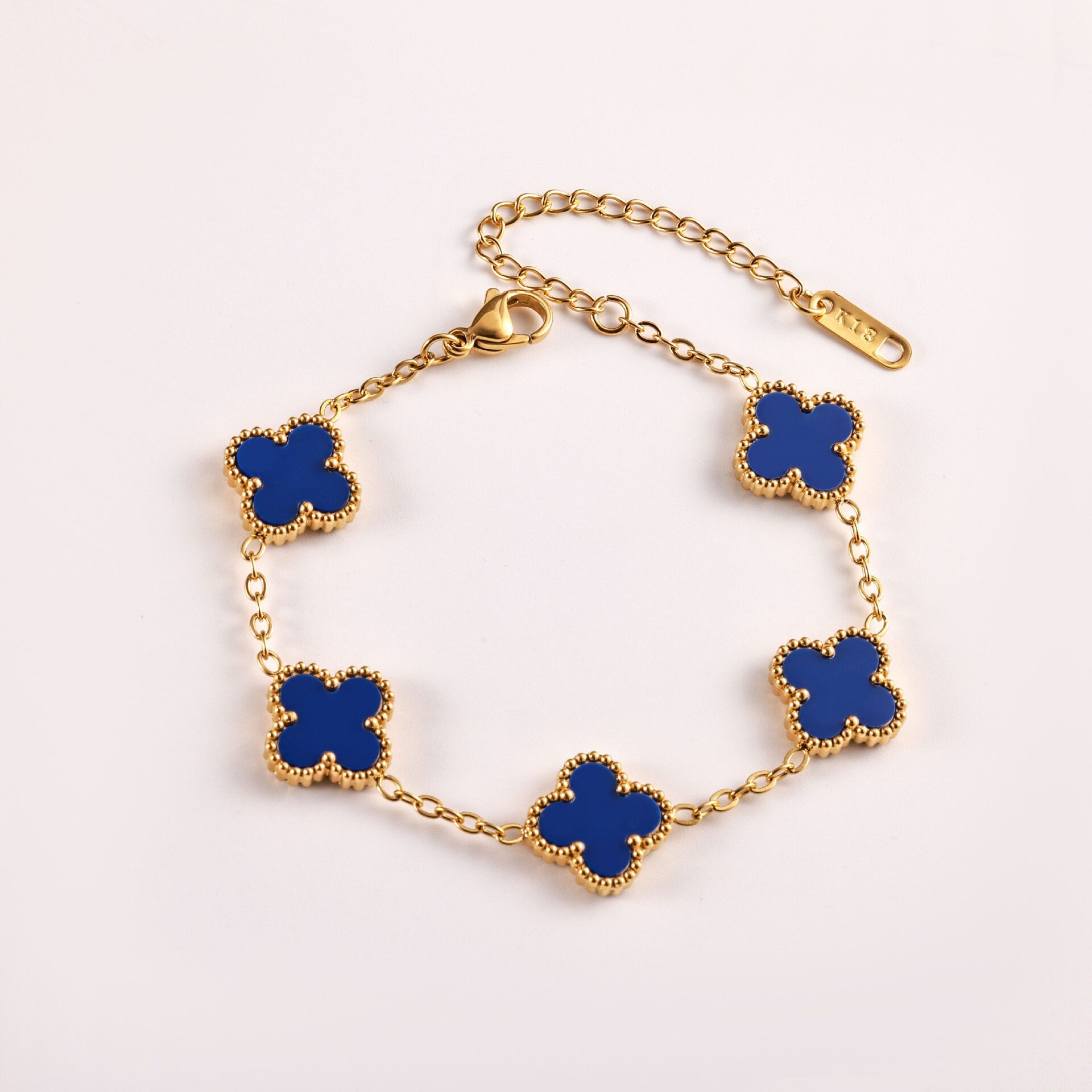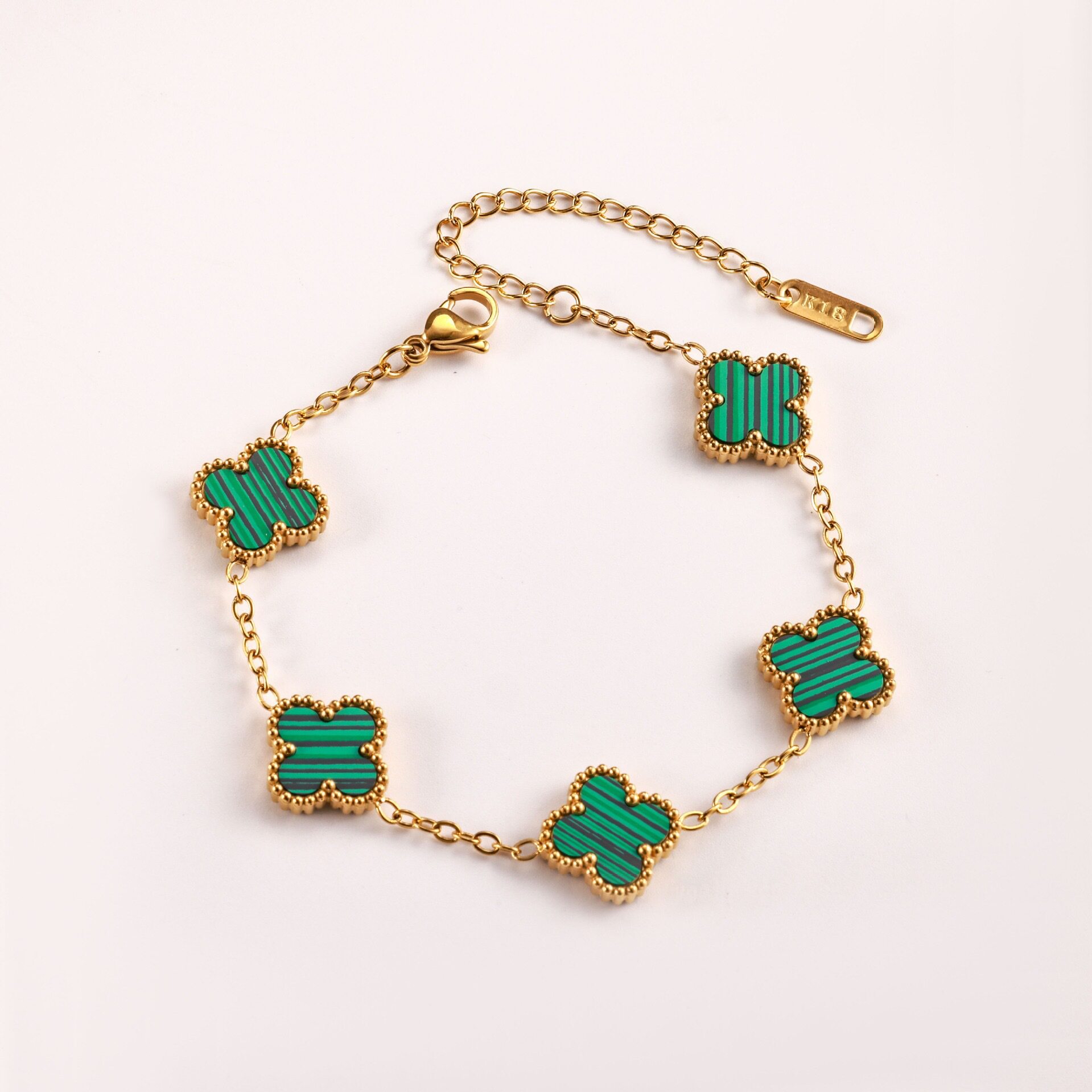 Four-leaf clover bracelet for women, light luxury and high-end 18K gold plated double-sided mother-of-pearl clover hand jewelry