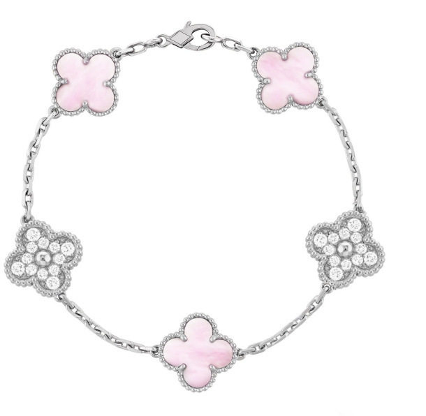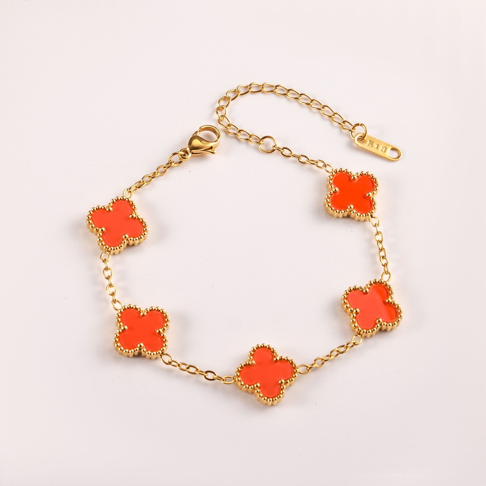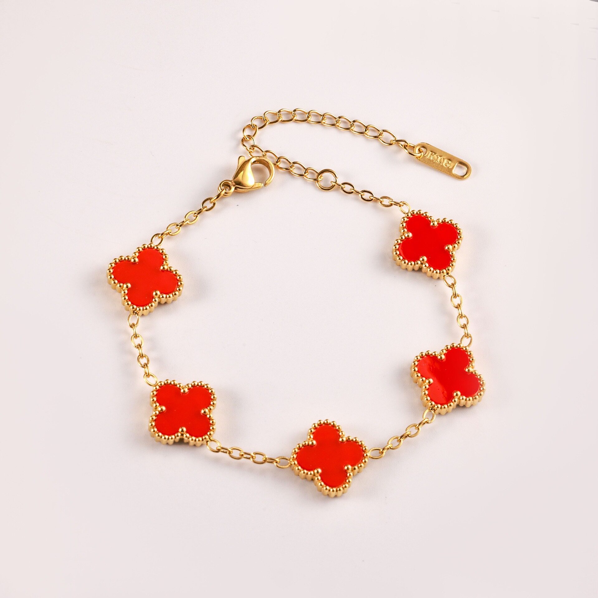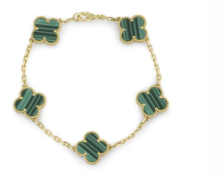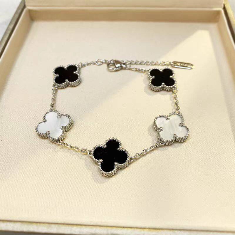 (FREE AIR SHIPPING) Four-leaf clover bracelet for women, light luxury and high-end 18K gold plated double-sided mother-of-pearl clover hand jewelry