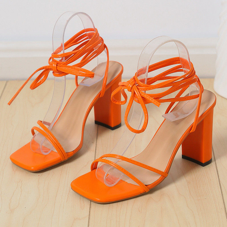 High-heeled sandals for women large size summer new square toe ankle strap thick heel