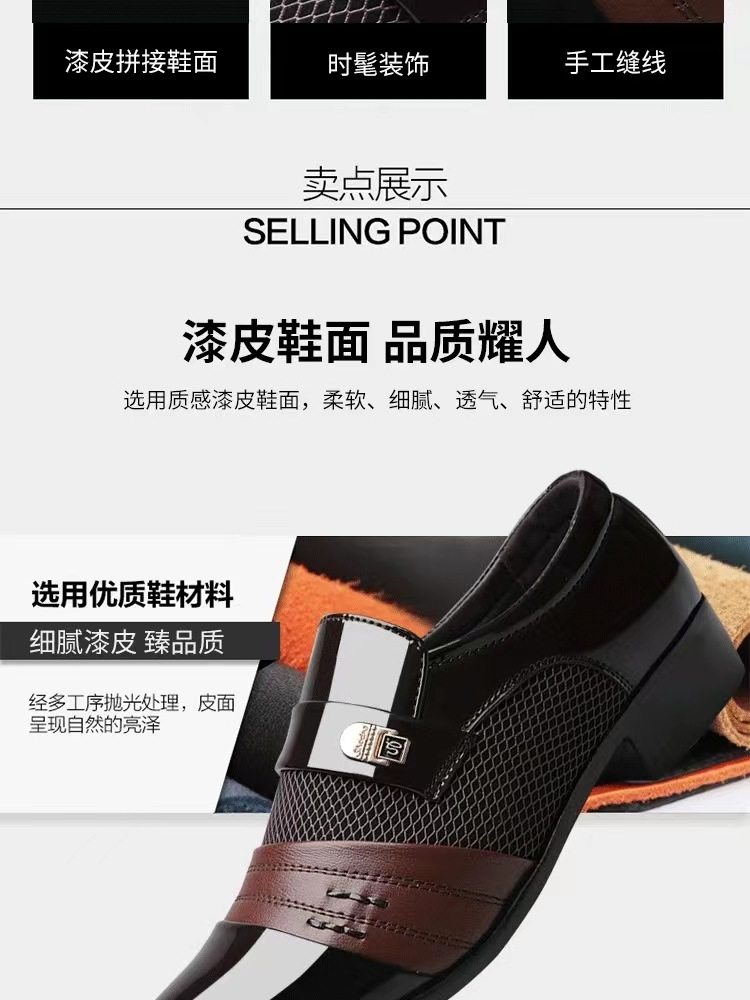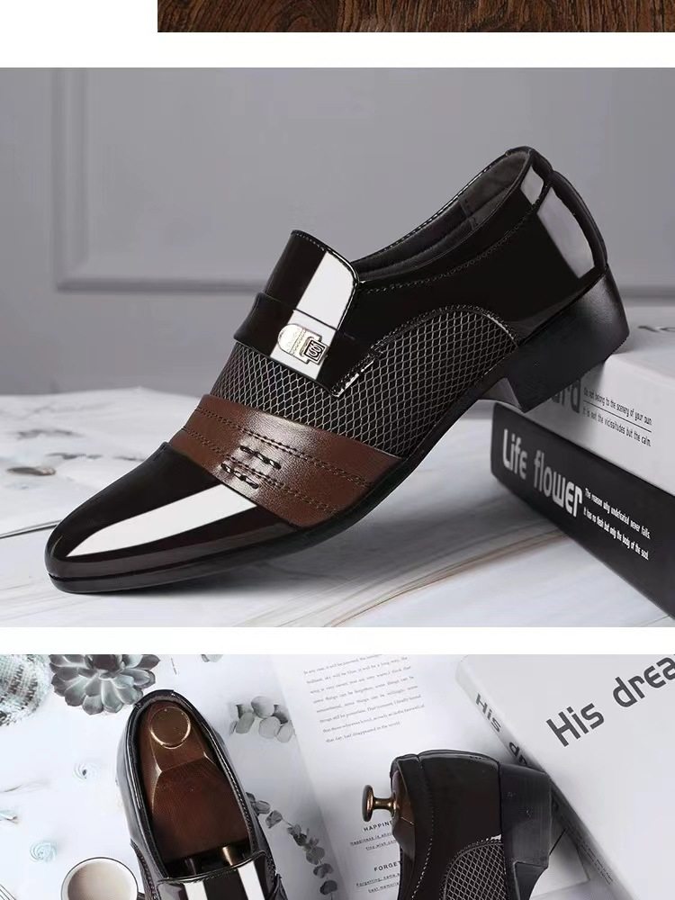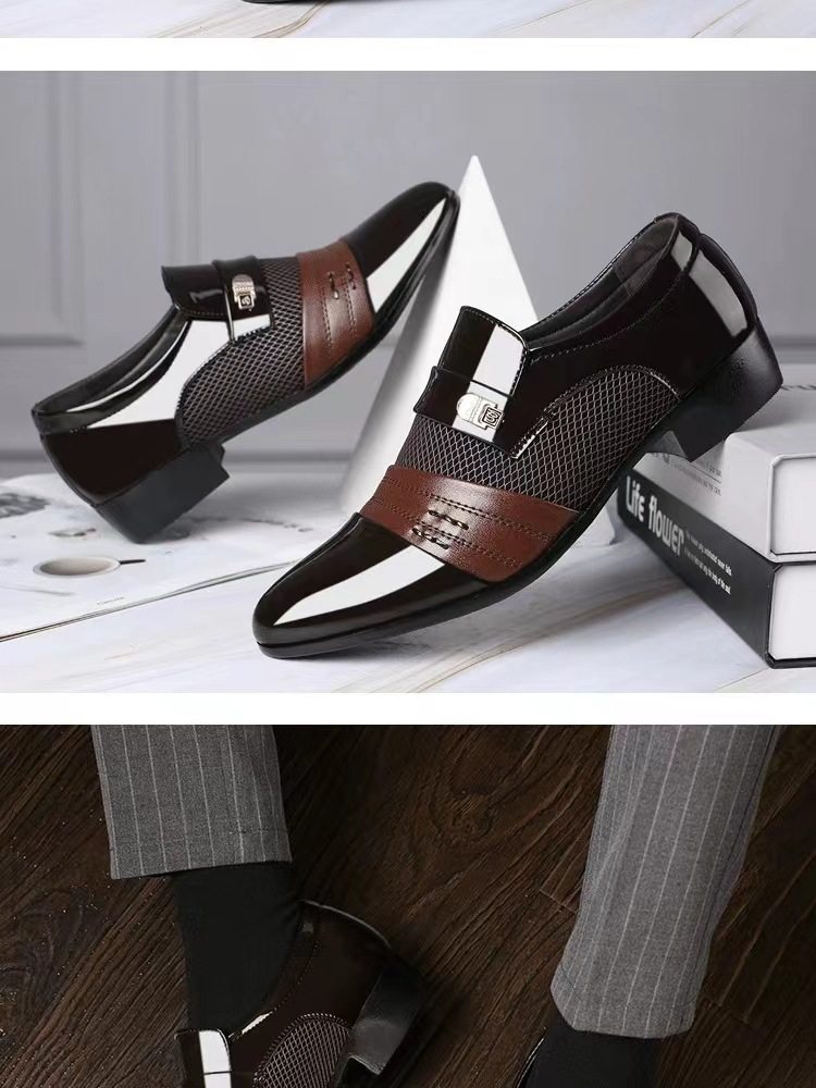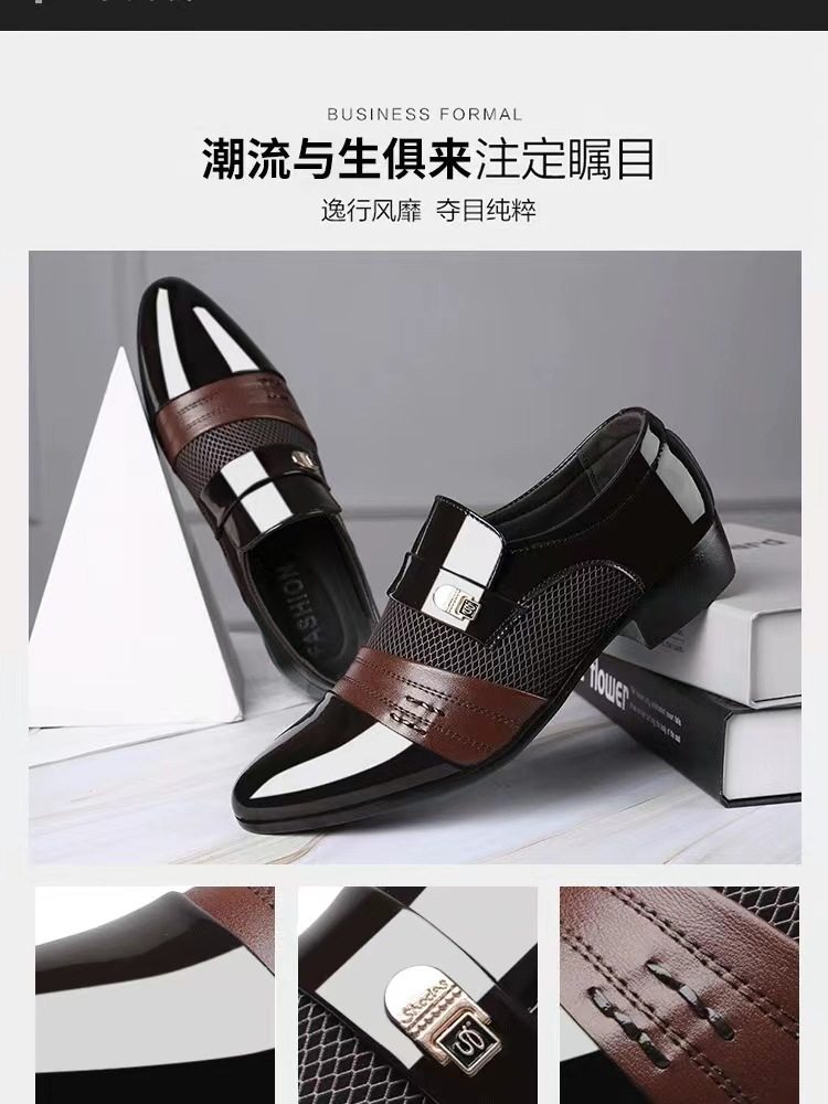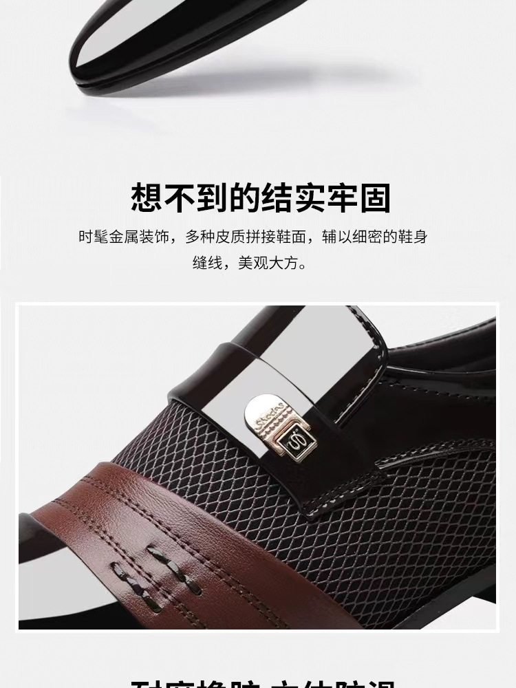 Large size formal men's leather shoes black business casual British shoes summer breathable mesh men's shoes