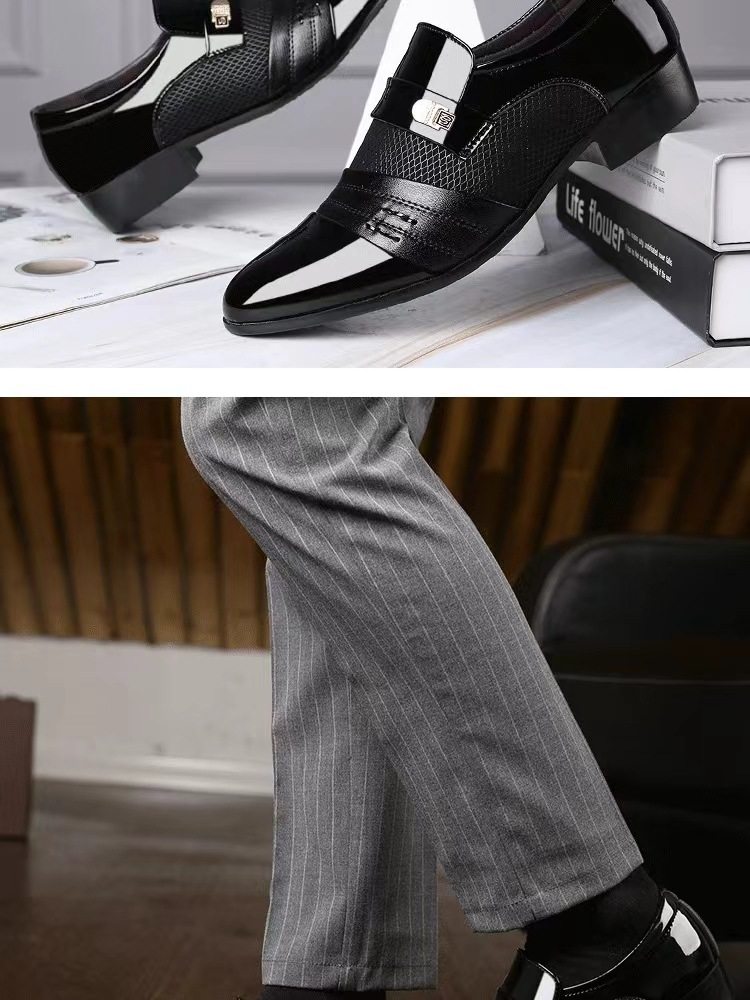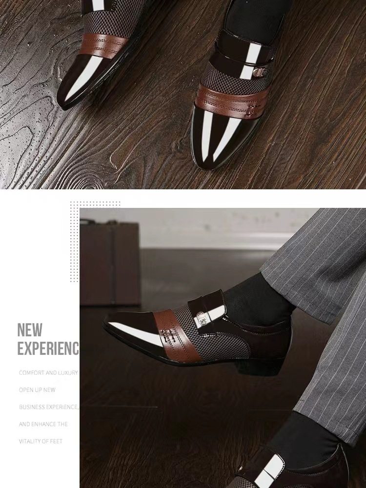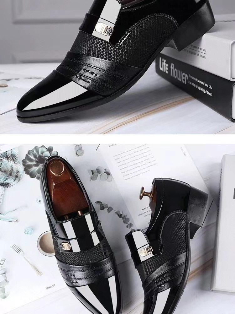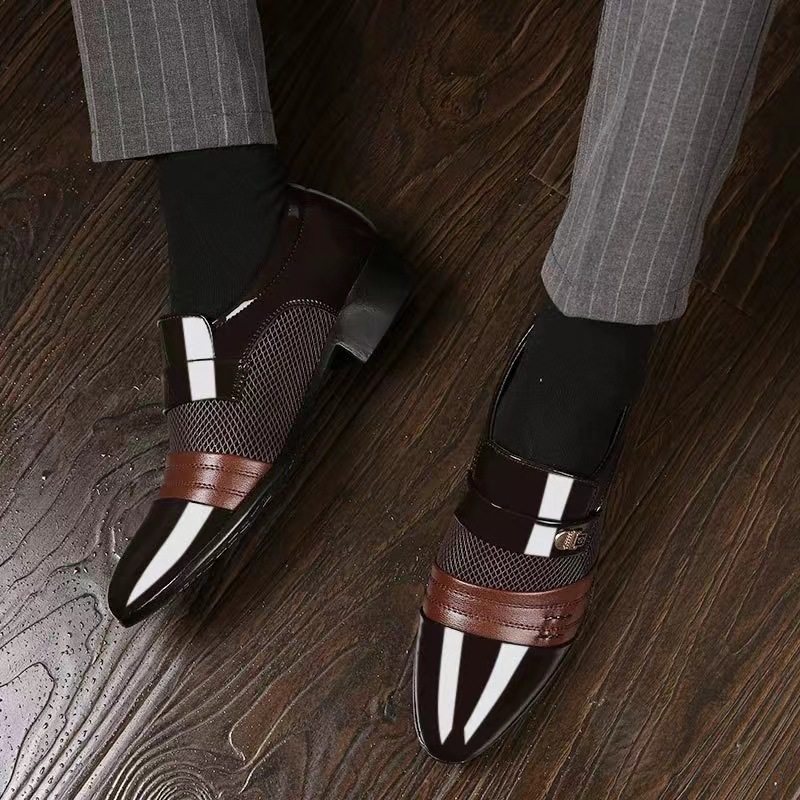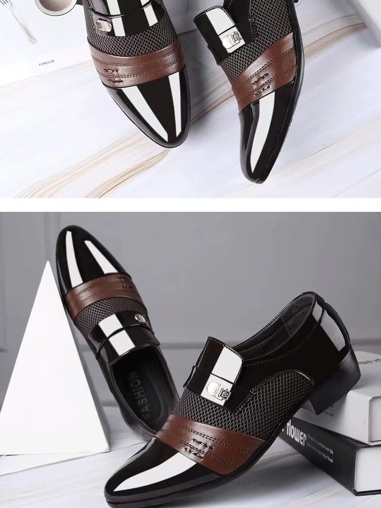 Large size formal men's leather shoes black business casual British shoes summer breathable mesh men's shoes
