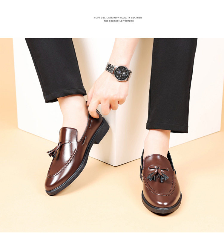 Large size men's shoes British men's casual leather shoes beanie tassel small leather shoes one-leg loafers for men