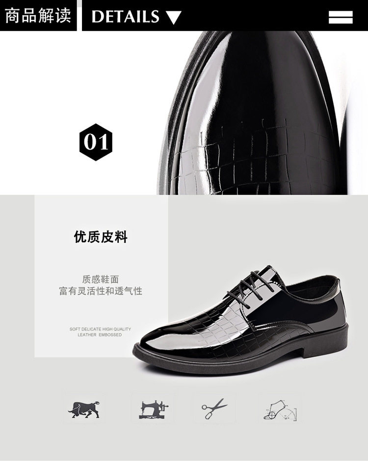Men's business leather shoes, high-end glossy formal leather shoes, youth casual and versatile