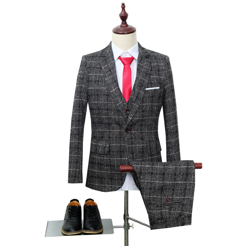 Men's suit three-piece slim British casual trendy groom's