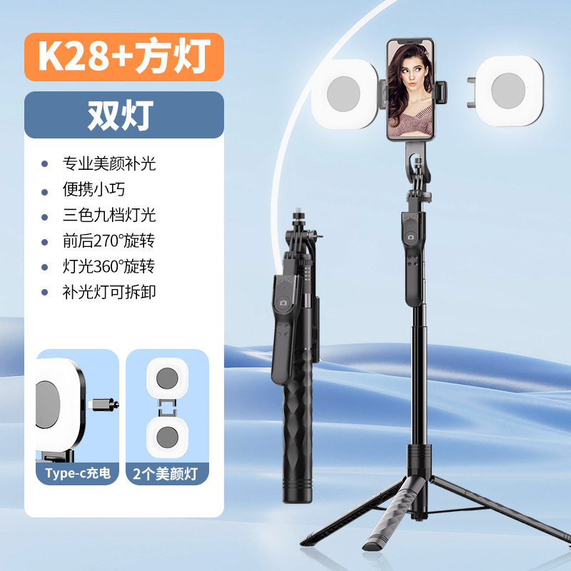 (FREE SEA SHIPPING) New Mobile Phone Bluetooth Selfie Stick K28 Handheld Stabilizer Floor-Standing Live Broadcast Bracket Tripod Universal Selfie Stick