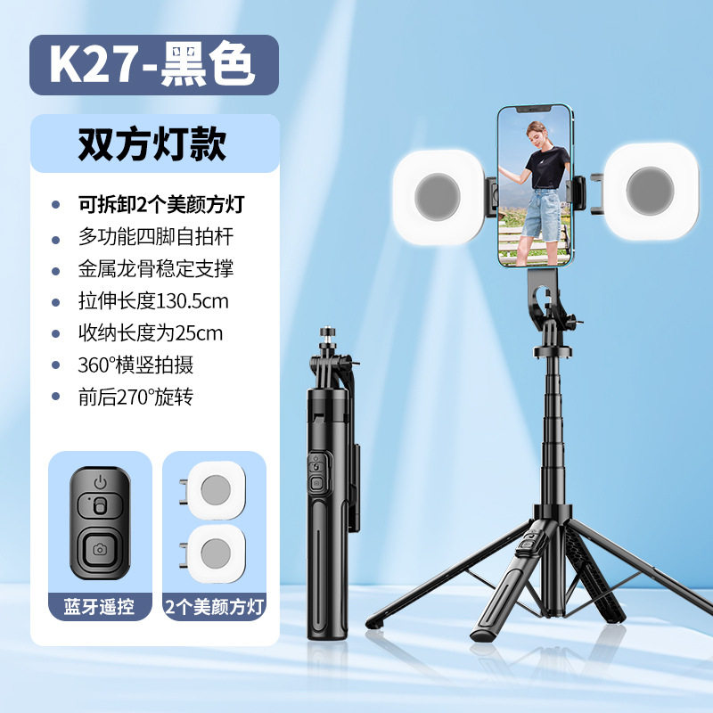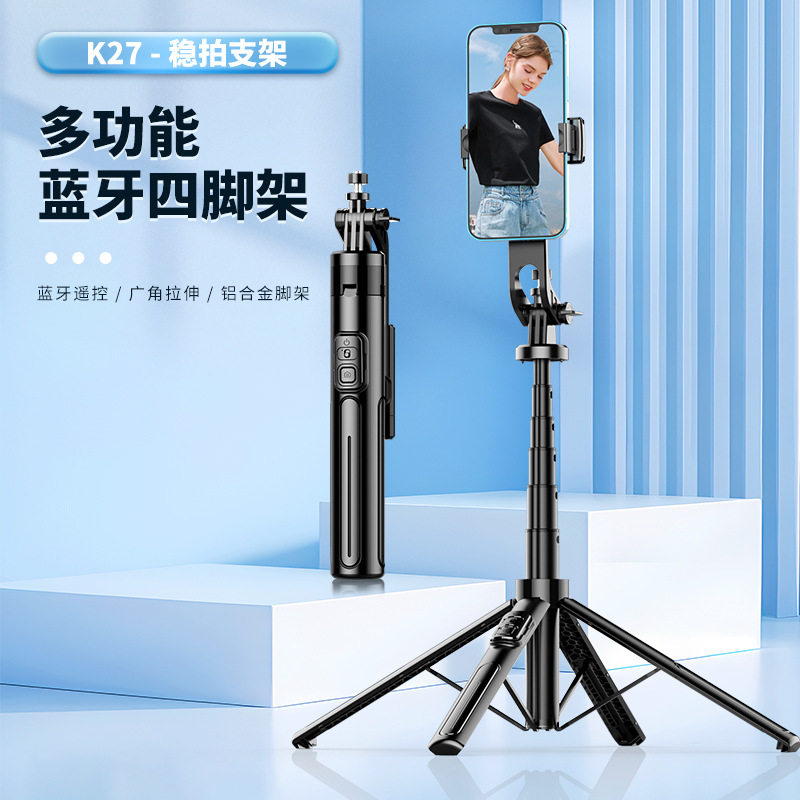 New Product K27 Selfie Stick Universal Bluetooth Four-Legged Selfie Stick for Mobile Phones 1.3m Mobile Phone Holder Anti-Shake Live Broadcast