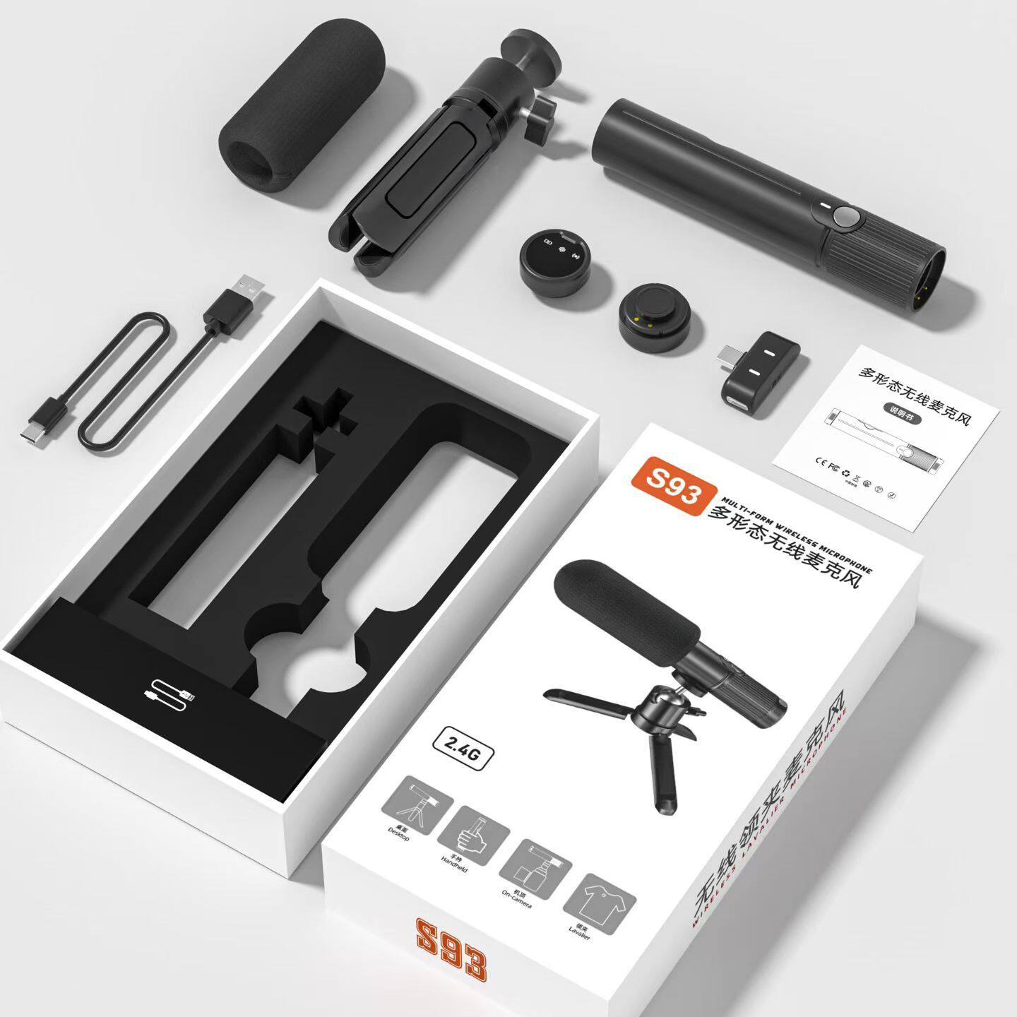 (FREE AIR SHIPPING) S93 private model wireless desktop lavalier microphone handheld lavalier microphone live broadcast short video AI long battery life noise reduction