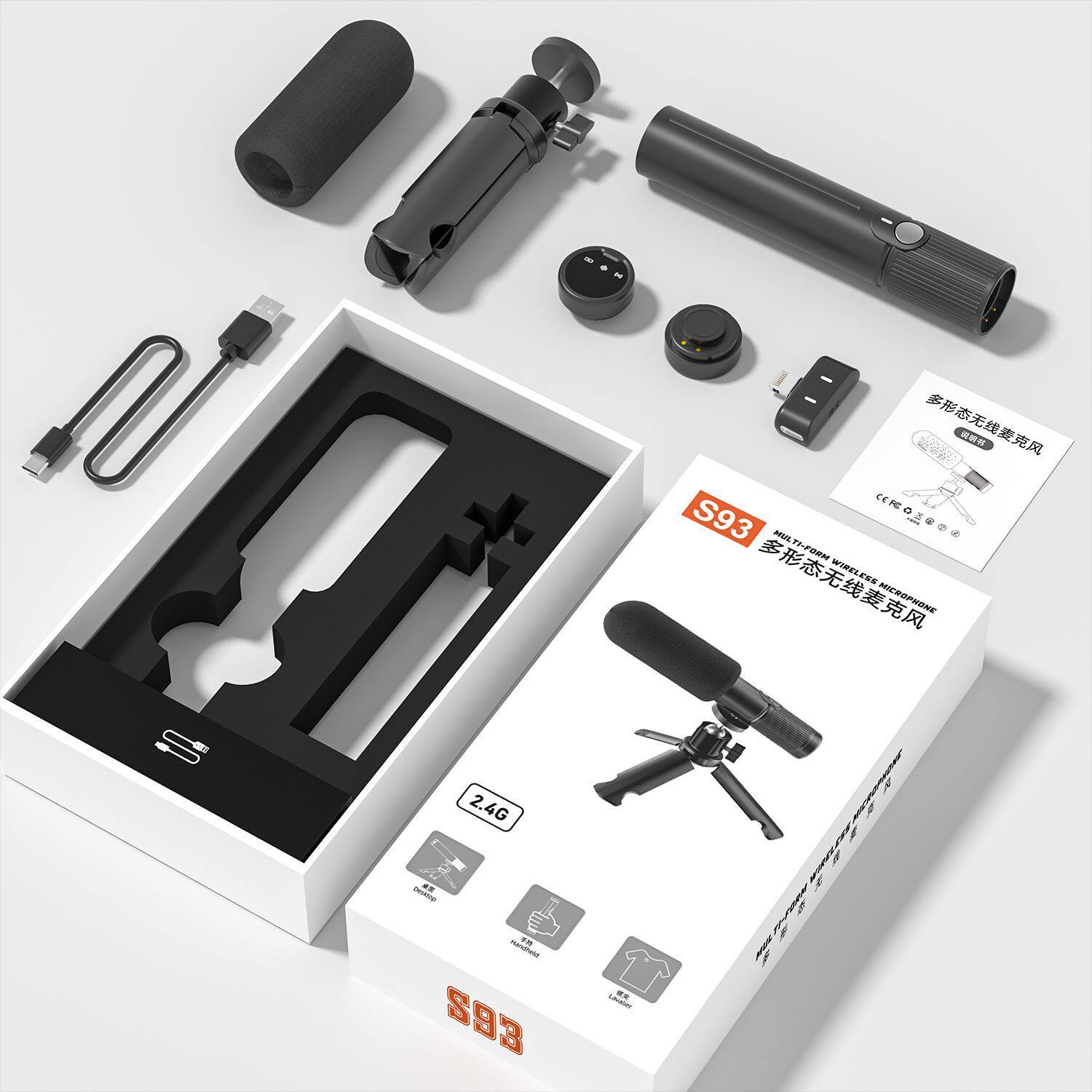 S93 private model wireless desktop lavalier microphone handheld lavalier microphone live broadcast short video AI long battery life noise reduction