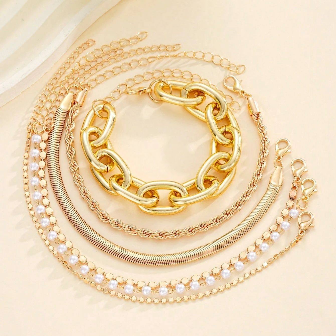 (FREE AIR SHIPPING) simple and versatile geometric fine chain bracelets for women snake bone chain box chain women's bracelet set wholesale