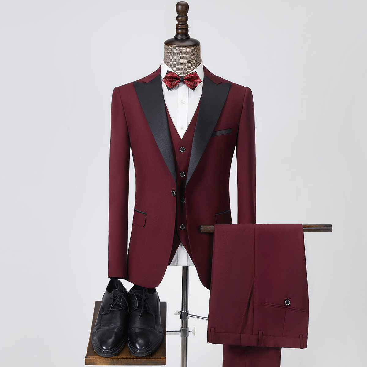 | 颜色 : | 灰色1106(西服+西裤+马甲), 酒红1107(西服+西裤+马甲), 黑色1103(西服+西裤+马甲), 蓝色1105 |