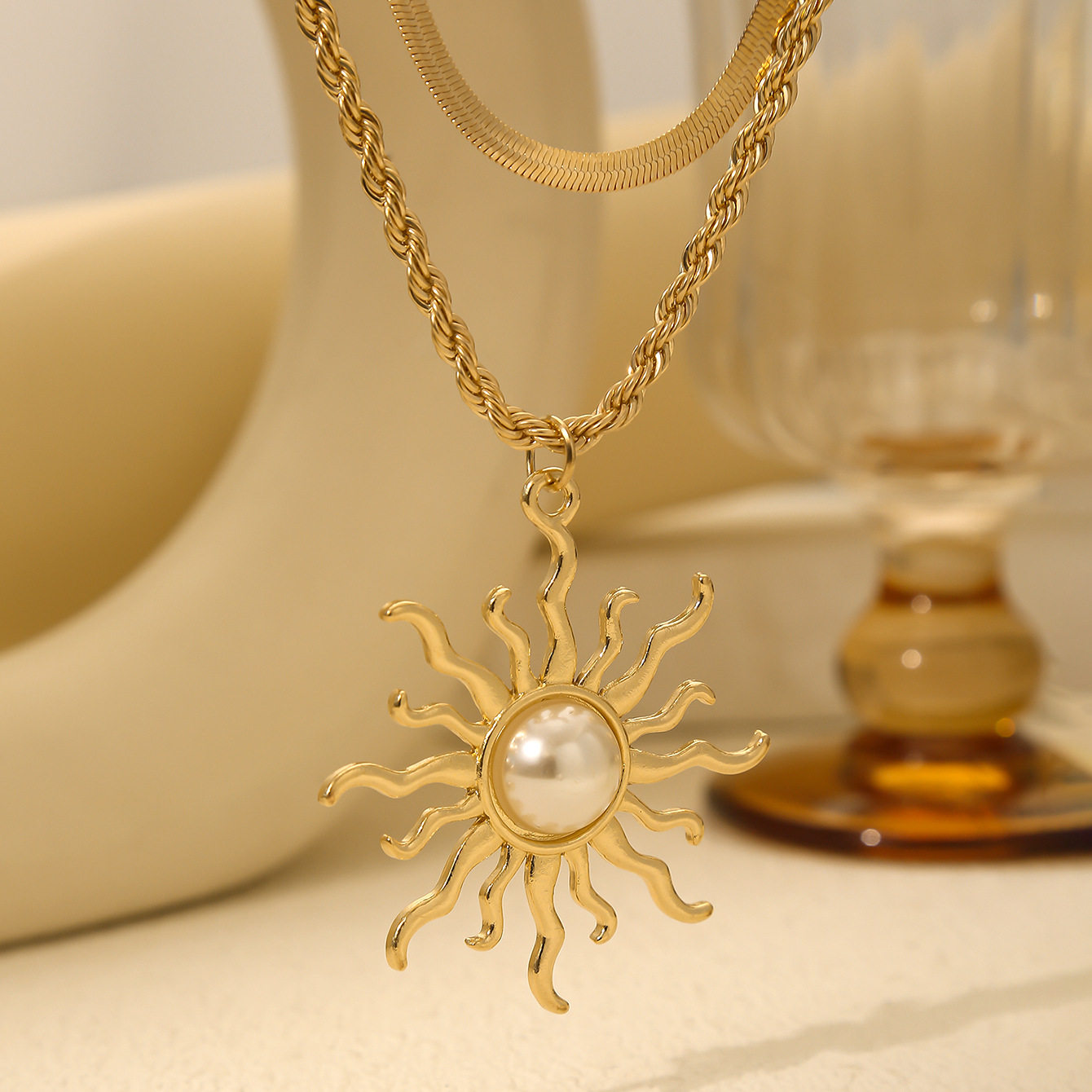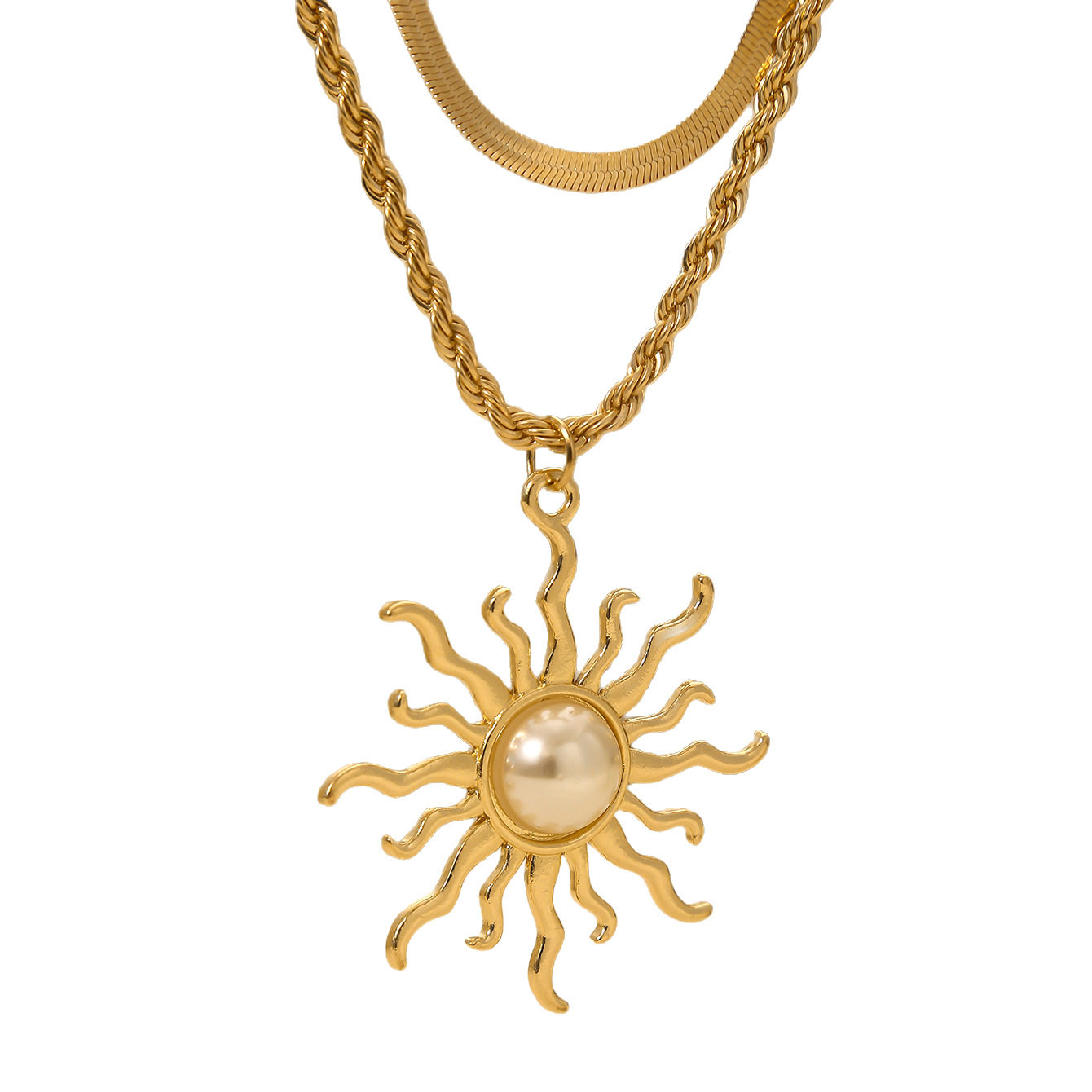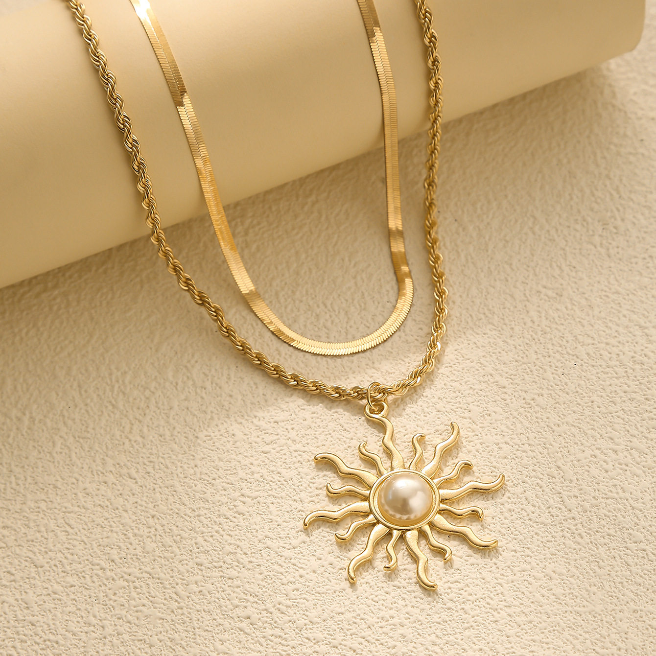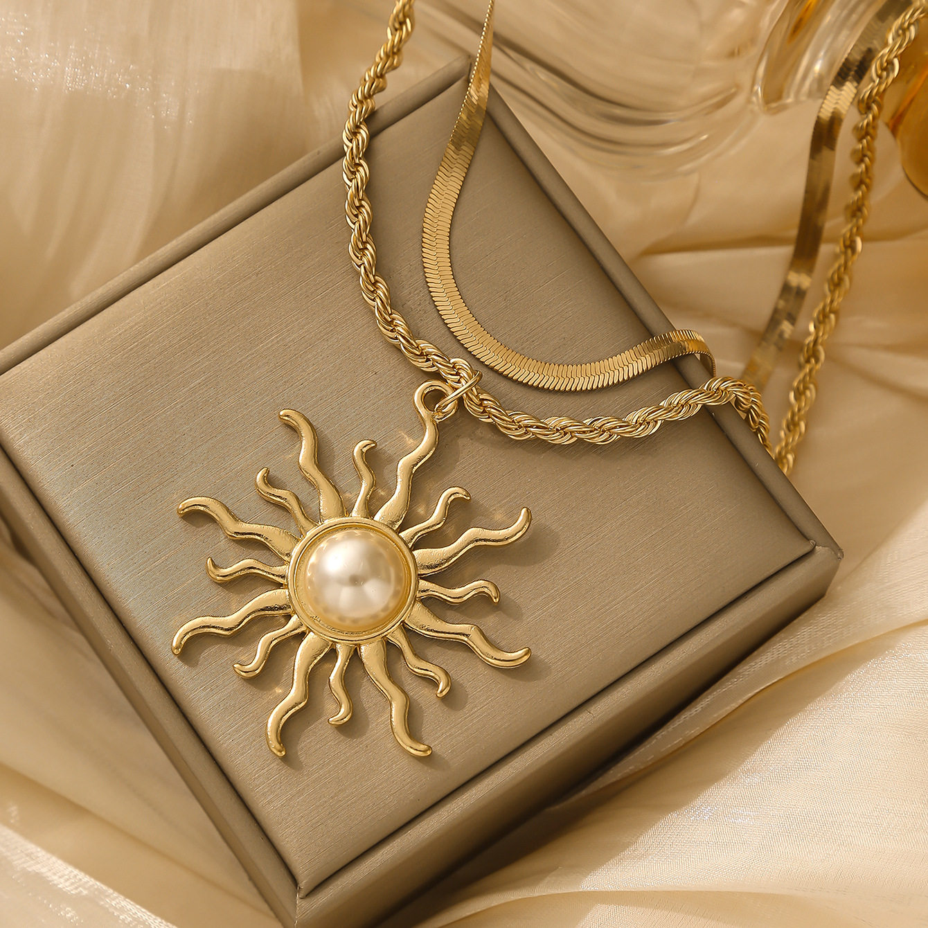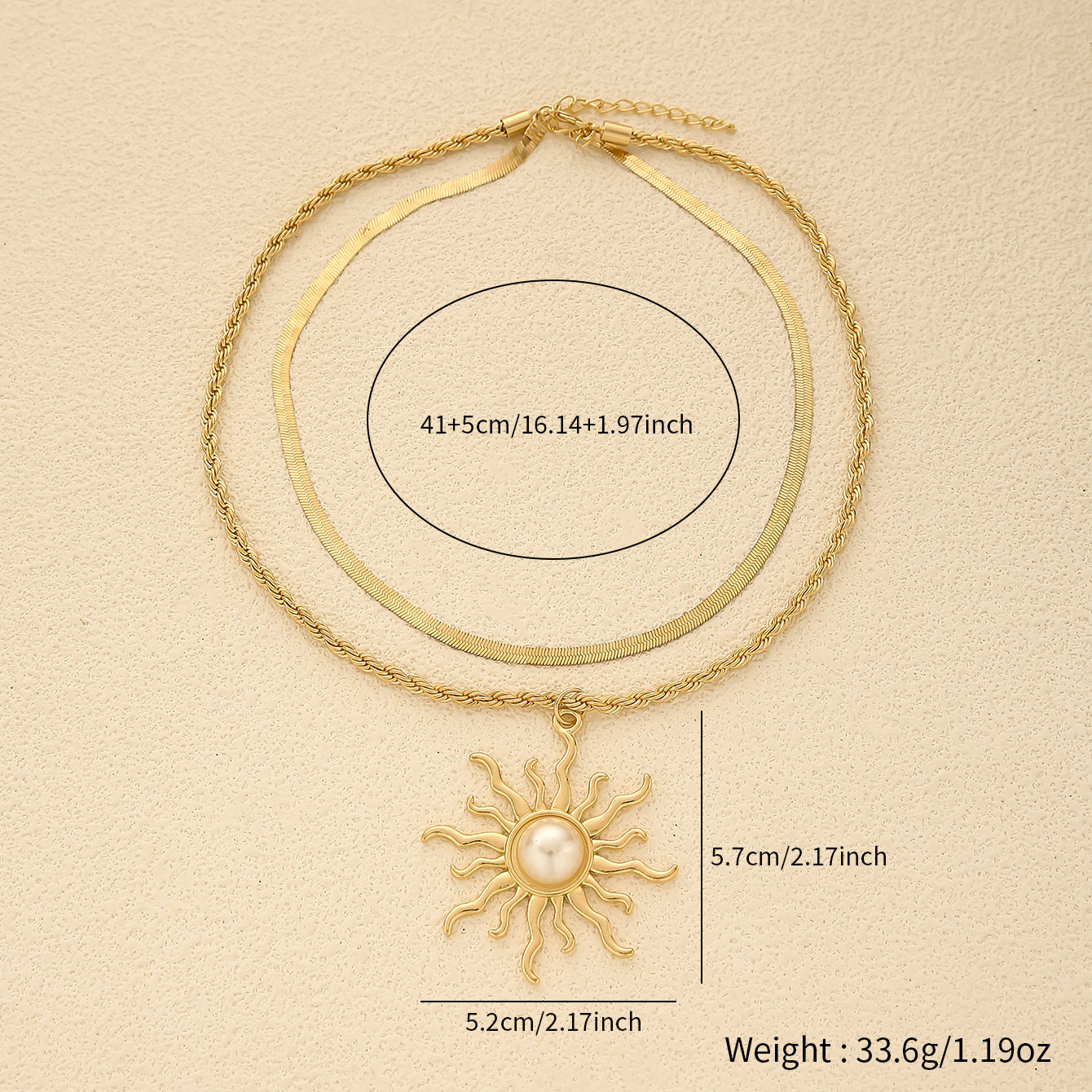 Sunflower necklace, retro large pearl pendant, fashionable and creative jewelry, multi-layered clavicle chain gift for women
